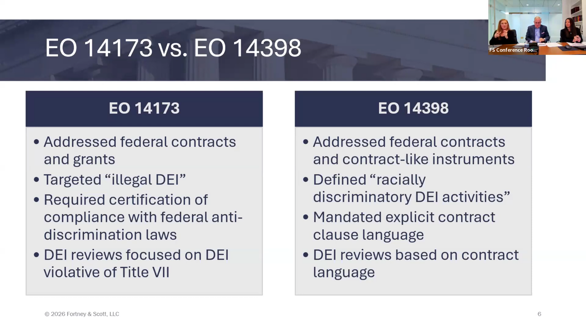 The FS Weekly Briefings are complimentary and will continue to be held on Mondays from 12:00 noon to 1:00 PM (Eastern). Our attorneys and HR consultants will address the leading workforce issues, including compliance with new legislation, managing leaves of absence, workplace safety, EEO/ADA issues, layoffs and furloughs, implementing new HR policies, and related issues. The Briefings also will provide a forum for employers to ask questions and share insights about the issues they are facing.